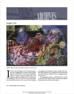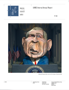 This page contains archival PDFs of the Imaging Research Center. In the dropdown menus you can find published research papers, exhibition or concert booklets, or any documents that expand upon the our collaborations. In the other dropdown menu you can access our Annual Reports. You can reach out about missing report inquiries.