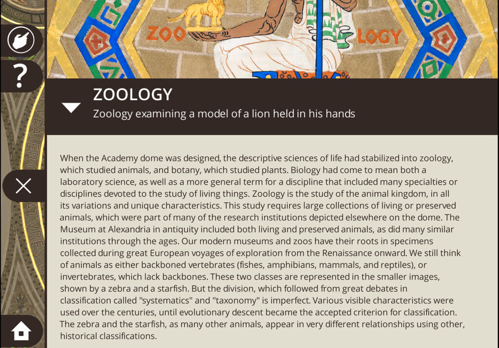 Dome Explorer includes in-depth explanations of the sciences represented in the mural.